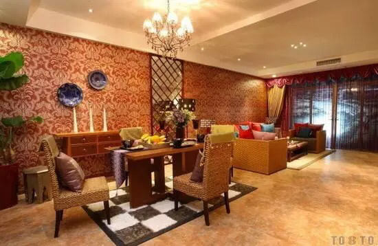 演绎旖旎自然的迷情 东南亚风格的装饰中,室内所用的材料多直接取自自然。由于炎热、潮湿的气候带来丰富的植物资源;木材、藤、竹成为室内装饰首选。 东南亚家具大多就地取材.